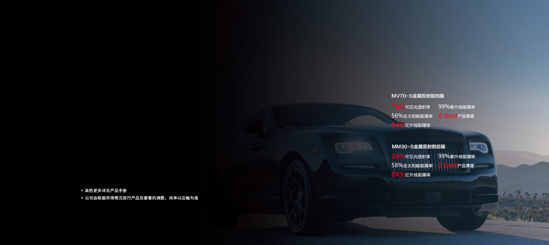 安全與隔熱共享,美化車輛外觀,同時讓玻璃的顏色和愛車的顏色相得益彰,更時尚、更高端。99%以上阻隔紫外線,保護(hù)肌膚健康與美麗。盡享尊貴盡享快樂。